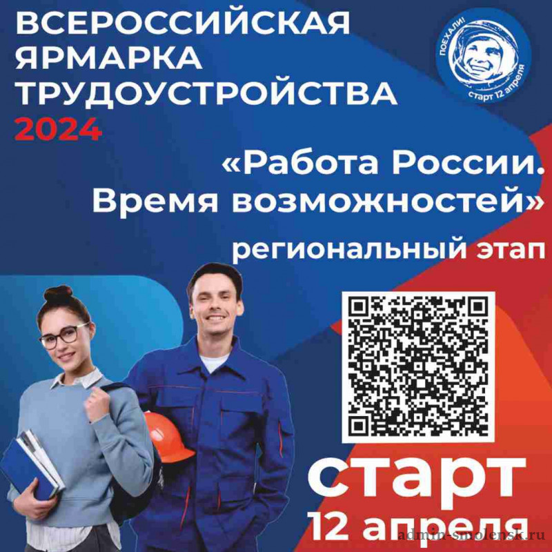работодателей; безработных граждан; граждан, которые хотят сменить сферу деятельности; студентов; выпускников; старшеклассников и их родителей.Подробнее ознакомиться с Программой проведения ярмарки трудоустройства и Площадках, на которых она будет проходить в нашем регионе можно на сайте Министерства занятости населения и трудовой миграции Смоленской области по QR коду, или перейдя по ссылке: https://zan.admin-smolensk.ru/menyu-sleva/informaciya/news/priglashaem-na-vserossijskuyu-yarmarku-trudoustrojstva-rabota-rossii-vremya-vozmozhnostej/