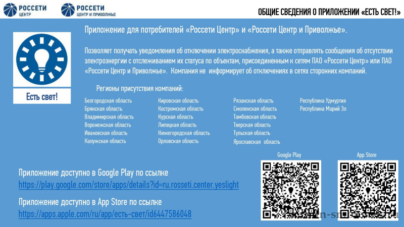 В ПАО «Россети Центр и Приволжье» реализован новый сервис по вопросам отсутствия электроэнергии, мобильное приложение «Есть свет!».