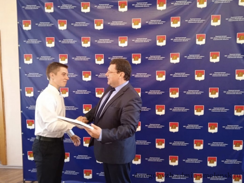МГлава муниципального образования "Дорогобужский район" Смоленской области Константин Серенков поздравил активистов Движения первых Дорогобужский район Антона Рыжака,