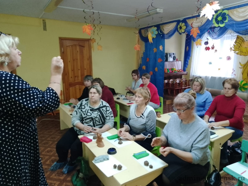 26 октября 2023 года в МБДОУ ЦРР д/с № 11 д. Шаталово состоялось заседание Школы мастерства «Русич» на тему: «Лепка Дракончика пельменным способом А.Б. Гончаровой». На занятиях педагоги изучают историю смоленской гончаровской глиняной игрушки-свистульки. Данное мероприятие было проведено с целью повышения профессионального мастерства педагогов средствами нетрадиционных форм художественно-продуктивной деятельности, а также расширения представлений о родном крае, его культуре и традициях.
