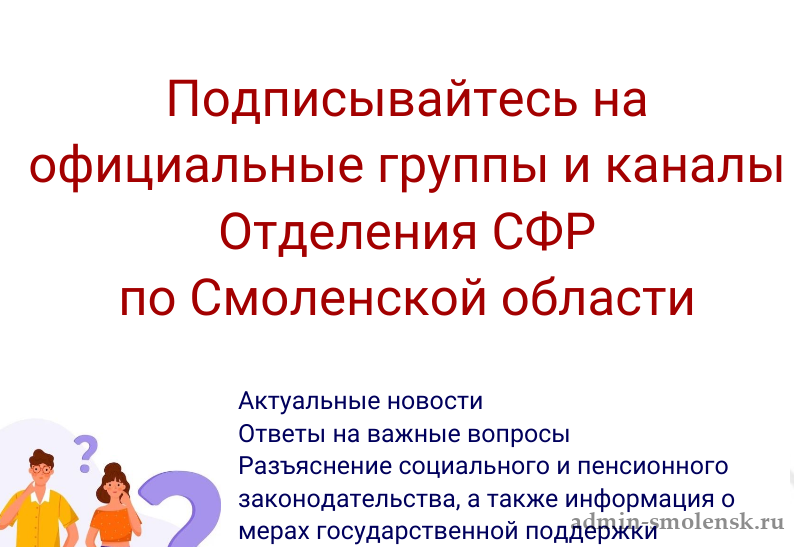 Подписывайтесь на официальные группы и каналы Отделения СФР по Смоленской области