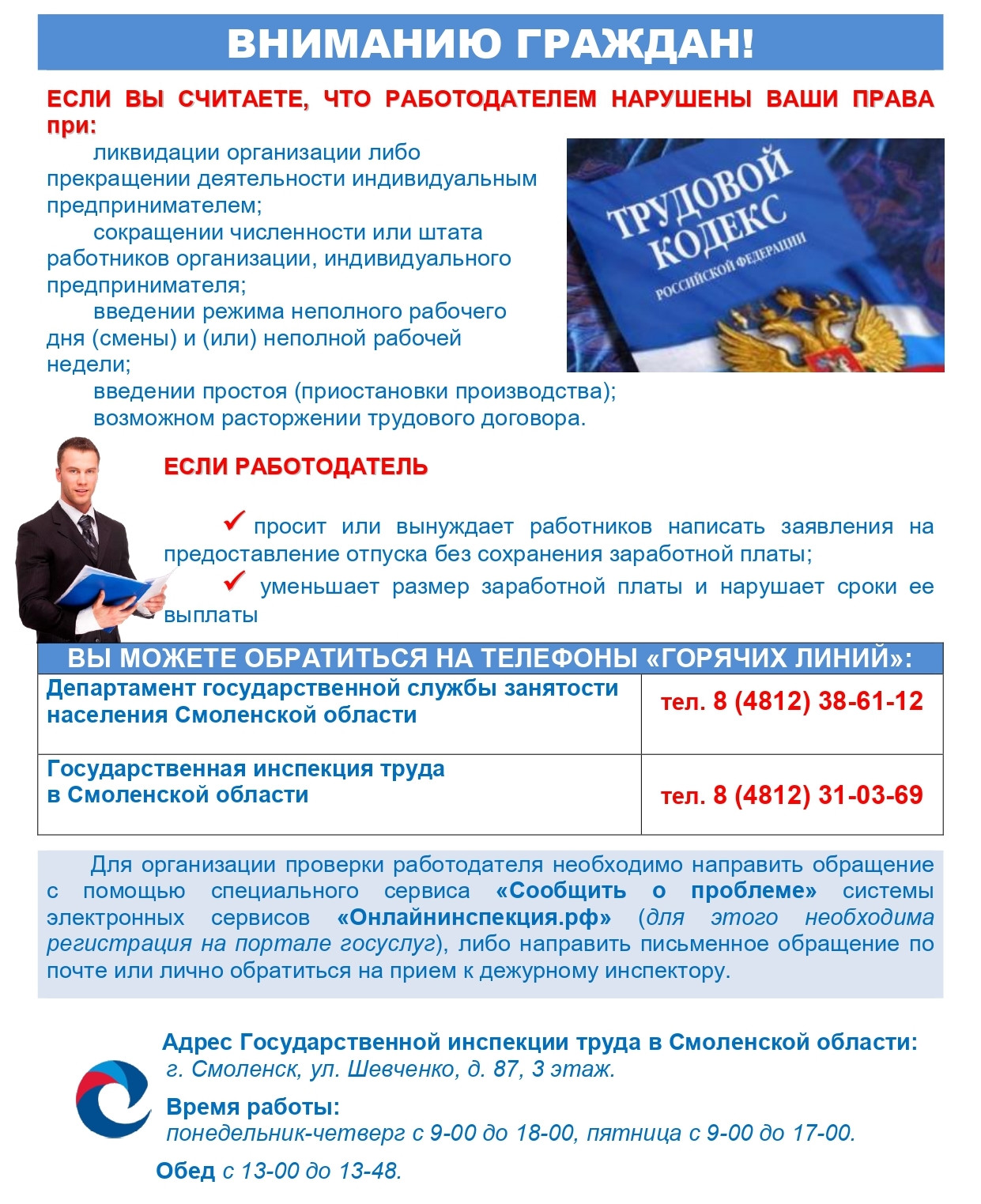 Памятка о работе горячей линии по вопросам задолженности по заработной плате перед работниками организаций, расположенных на территории Смоленской области