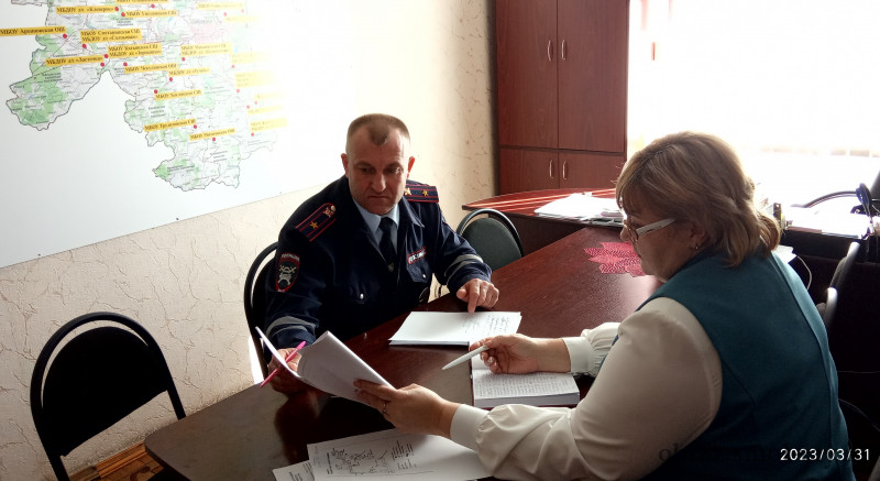 31.03.2023 в комитете по образованию Администрации муниципального образования "Cмоленский район" Cмоленской области состоялась рабочая встреча председателя комитета по образованию Лонщаковой И.В. с начальником Госавтоинспекции ОМВД России по Смоленскому району, майором полиции Воскресенским Н.В.