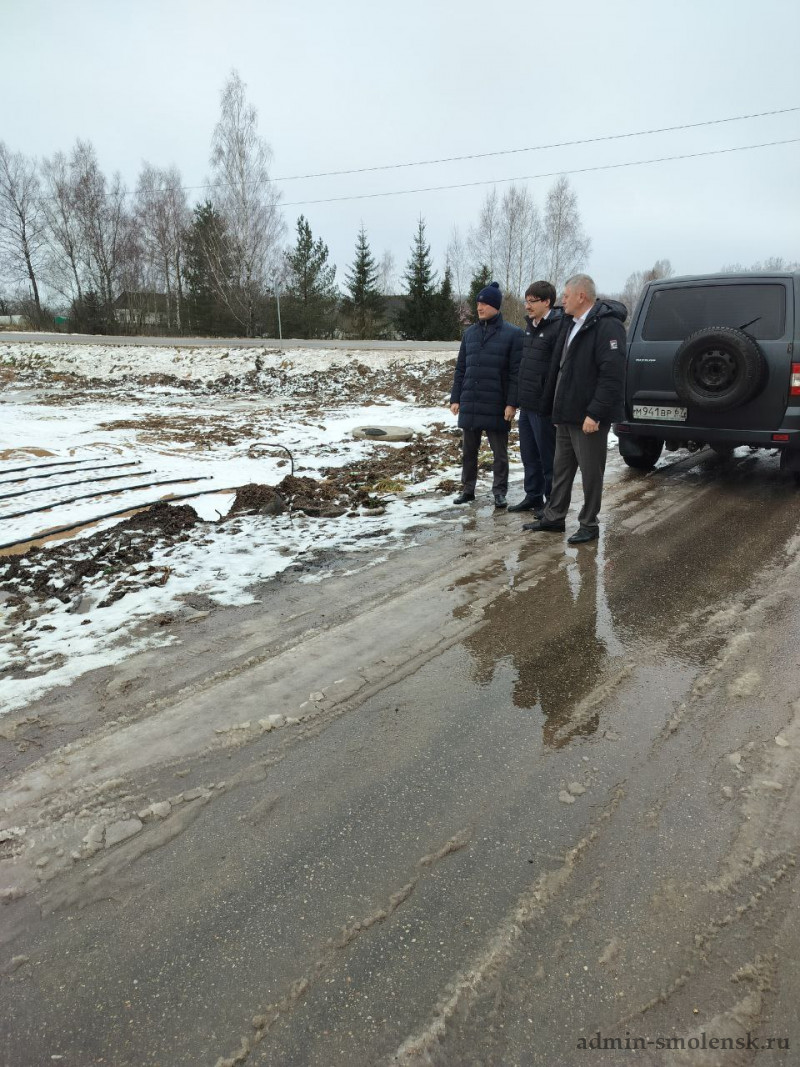 Глава Ярцевского муниципального округа Роман Захаров совместно с и.п. председателя окружного совета Александром Котовым и министром ЖКХ Николаем Борисовым проинспектировали выполнение ремонта очистных сооружений в д. Капыревщина. Благодаря поддержке регионального правительства в прошлом году были выделены средства на проведение работ.
