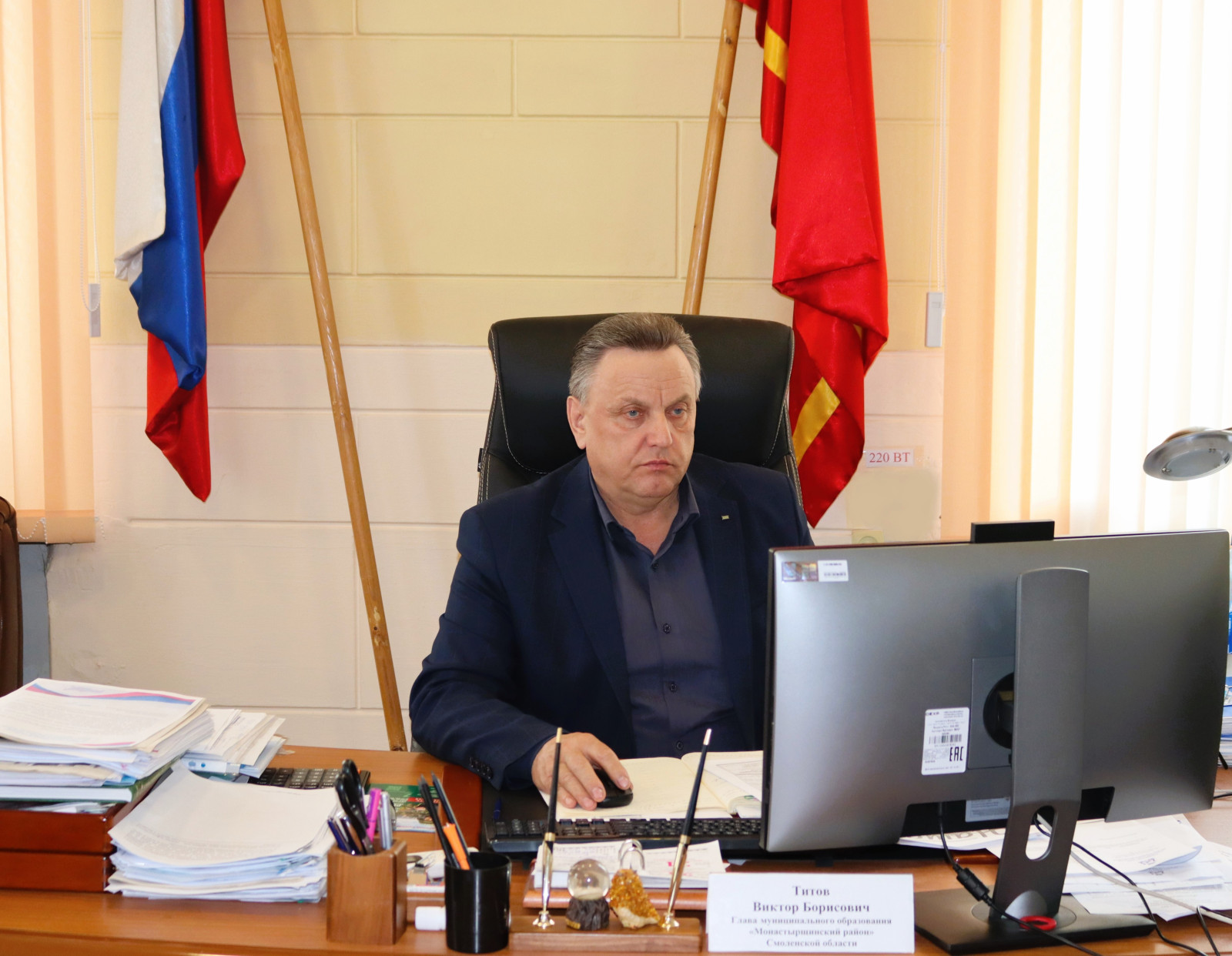 В заседании принял участие Глава муниципального образования «Монастырщинский район» Смоленской области Виктор Борисович Титов .