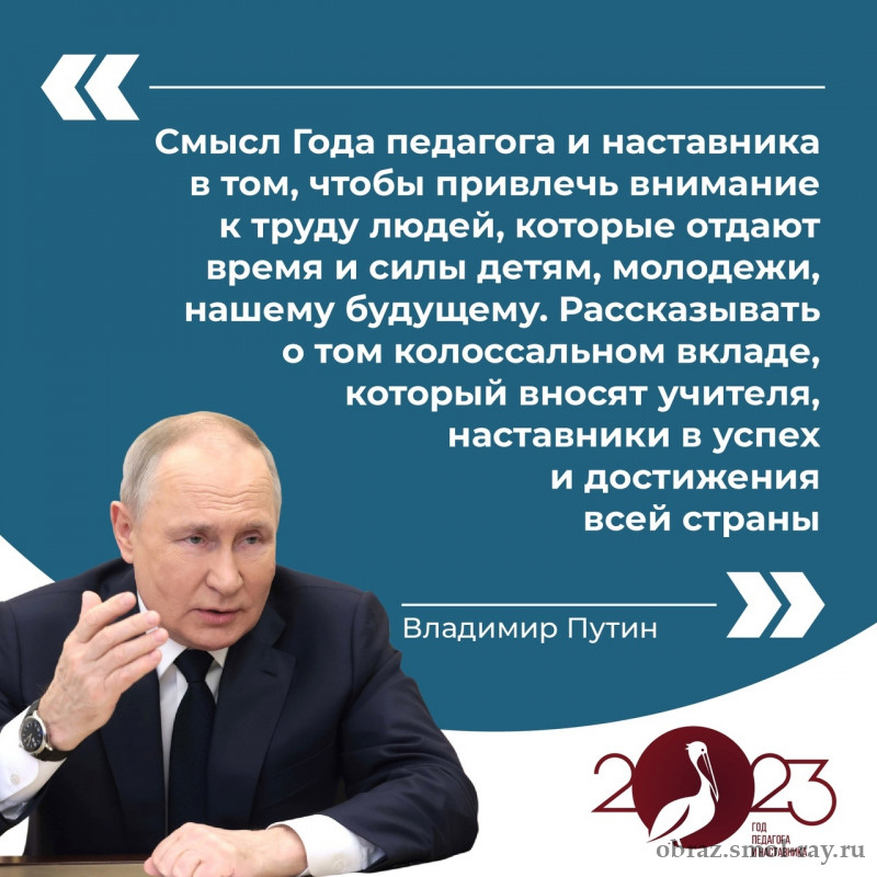 Владимир Путин дал старт Году педагога и наставника в России. Весь 2023 год будет посвящен российским учителям.