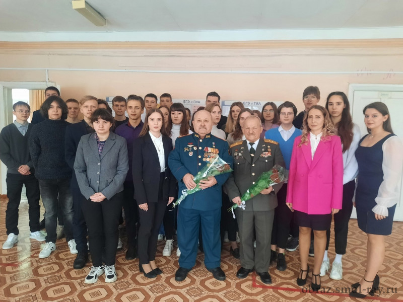 В МБОУ Пригорской СШ урок Мужества был проведён Валерием Петровичем Куцыком, председателем правления Смоленской областной общественной организации «Десантное братство» имени Маргелова В.Ф. и Московцевым Сергеем Валерьевичем, участником боевых действий в Чеченской республике и Сирии.