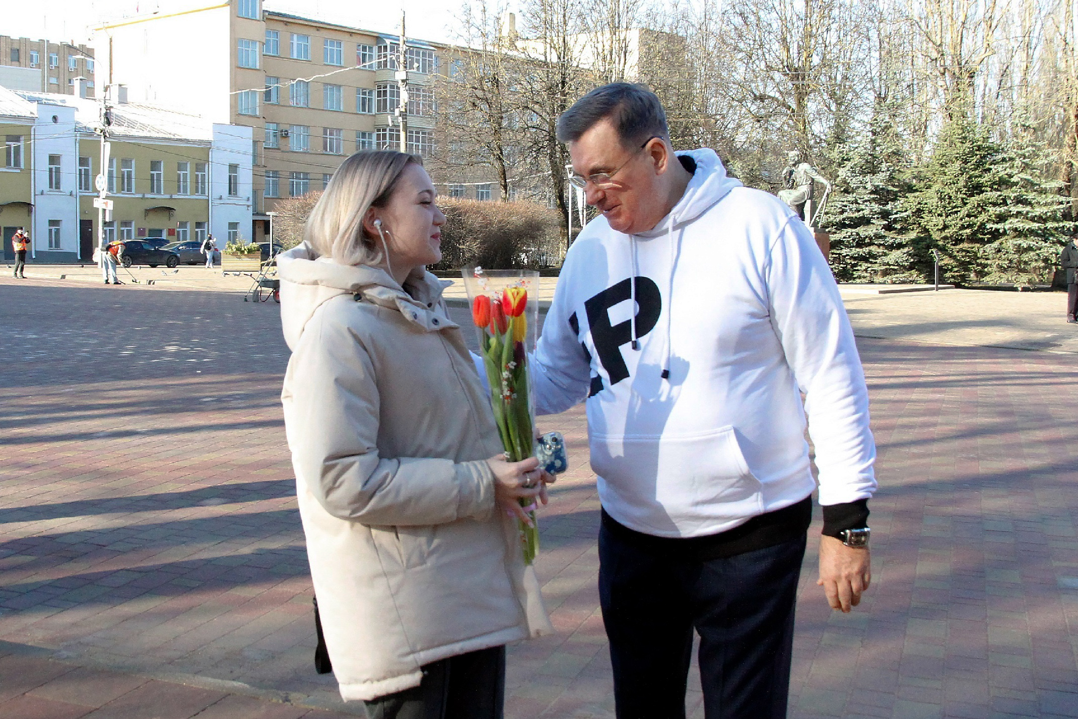 В числе создававших праздничное настроение для смолянок — глава города Александр Новиков фото: пресс-служба отделения ЕР в Смоленской области Смоленск, 8 марта .