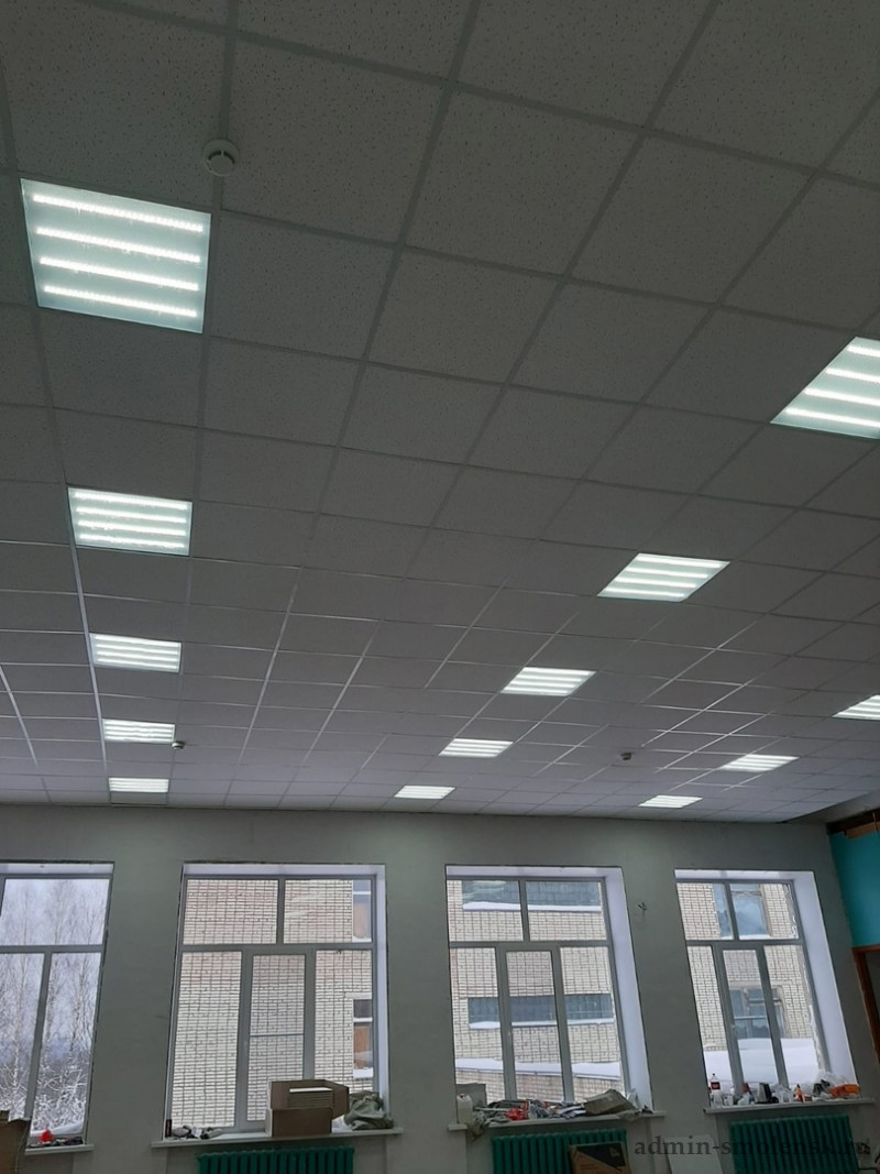 Летом здесь заменили оконные блоки. Сейчас идет ремонт потолка и стен помещения. Кроме того, запланировано заменить дверные блоки, электропроводку и установить светильники.