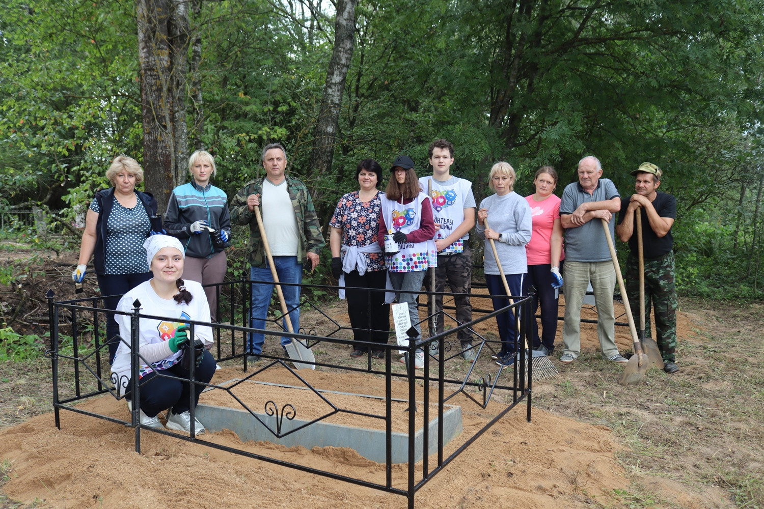 Глава муниципального образования «Монастырщинский район» Смоленской области Виктор Титов , депутат Соболевского поселения Ольга Ходотаева , обучающиеся Монастырщинского Центра внешкольной работы, Волонтеры Победы Монастырщинского района (руководитель — Анжела Лобанова ), а также сотрудники районной администрации провели работы по благоустройству могил и прилегающей территории, где захоронены расстрелянные фашистами партизаны.