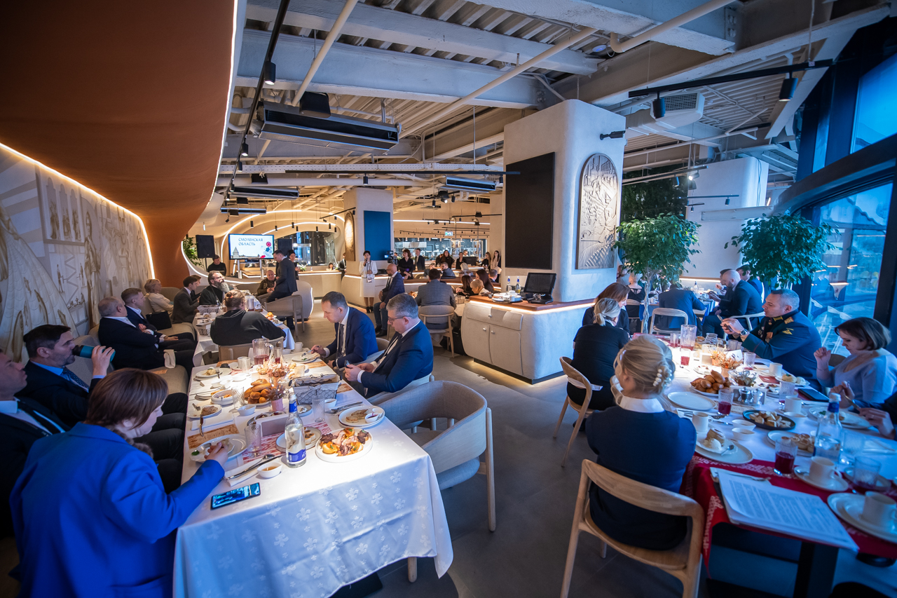 День Смоленской области на выставке-форуме «Россия» начался с делового завтрака на тему сохранения объектов культурного наследия. Модератором мероприятия стала праправнучка великого русского писателя, автора бессмертного романа «Война и мир» Льва Николаевича Толстого — Фекла Толстая. В числе участников делового завтрака — Губернатор Василий Анохин, заместитель генерального директора ОА «ДОМ.РФ» Денис Филиппов, генеральный директор федерального Агентства по управлению и использованию памятников истории и культуры Юрий Бородаев, руководитель Федерального агентства по управлению государственным имуществом Вадим Яковенко, экономист, заведующая кафедрой РЭУ им. Г.В. Плеханова, дочь Юрия Гагарина Галина Гагарина, проректор, руководитель аппарата НИУ ВШЭ Ирина Мартусевич и другие спикеры.