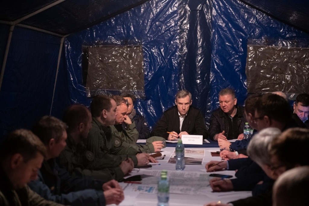 Губернатор Смоленской области Василий Анохин провел заседание оперативного штаба на месте обрушения моста в Вязьме.