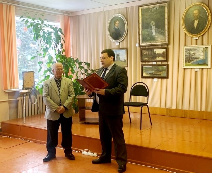 К.Н. Серенков поблагодарил автора за организацию выставки, вручил художнику приветственный адрес, сувениры и цветы.