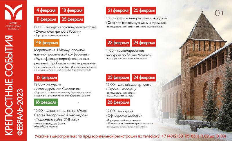 Февральская программа музея «Смоленская крепость» будет посвящена Дню защитника Отечества. Государственный музей представит новую выставочную экспозицию «Смоленская крепость России».