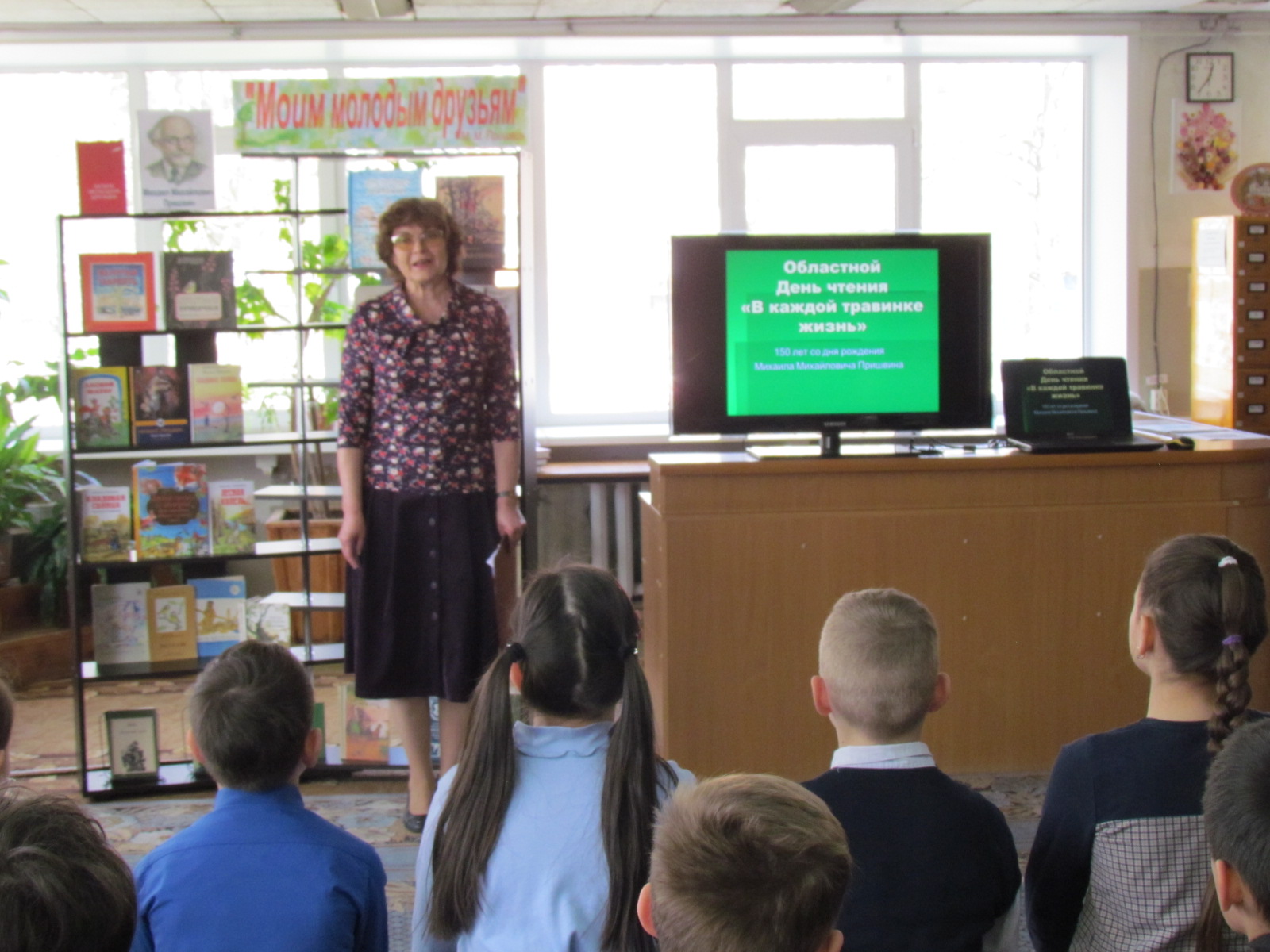 24 апреля в районной детской библиотеке в рамках акции «Областной день чтения «В каждой травинке жизнь», посвящённый 150-летию со дня рождения М. М. Пришвина» для учеников школы №6 прошли библиотечные уроки «Наш земляк, писатель, краевед».