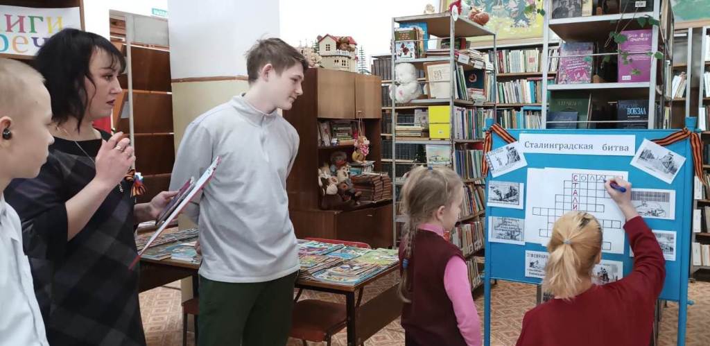 Прошло уже 80 лет, но подвиг героев учит нас мужеству, стойкости и любви к Родине. Ведущая мероприятия рассказала присутствующим о Сталинградской битве, о том, как в неравном бою доставалась победа нашему народу. Участники мероприятия узнали о героизме и мужестве солдат, о том, что в суровые годы вместе со взрослыми сражались на фронтах и в тылу врага дети. Как и взрослым, и детям пришлось пережить голод и холод, гибель родных, познакомились и историческими памятниками той великой битвы. Закрепить свои знания ребята смогли, отвечая на вопросы исторической викторины «Сталинградская битва».