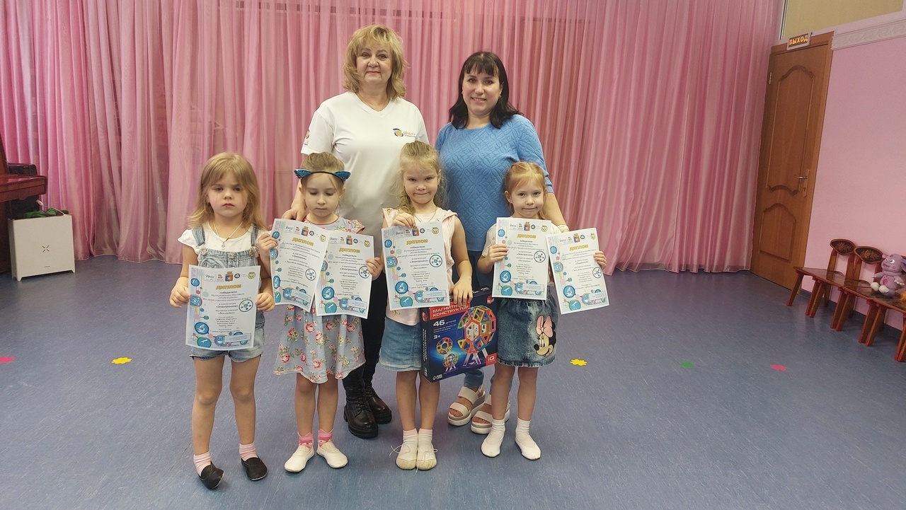 Команда «Всезнайки» (Ерофеева Маргарита, Мелешкина Алеся, Хорина Аня, Никешина Даша, воспитатель Сурина Алеся Николаевна) стали победителями среди шести команд в компетенции «Электроника».