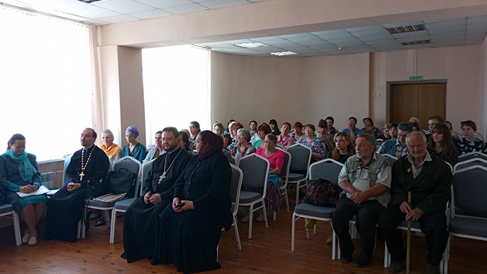 Продолжил просветительскуя часть мероприятия Иеромонах Рафаил (Ивочкин), доктор исторических наук, кандидат богословия, заведующий кафедрой богословских и церковно-исторических дисциплин, председатель Смоленского общества краеведов, автор 120 опубликованных работ по истории Русской Православной Церкви на Смоленщине, выступил с докладом «Вклад духовенства Смоленской епархии в развитие естественных наук». Кроме того, он подарил библиотеке свои книги.