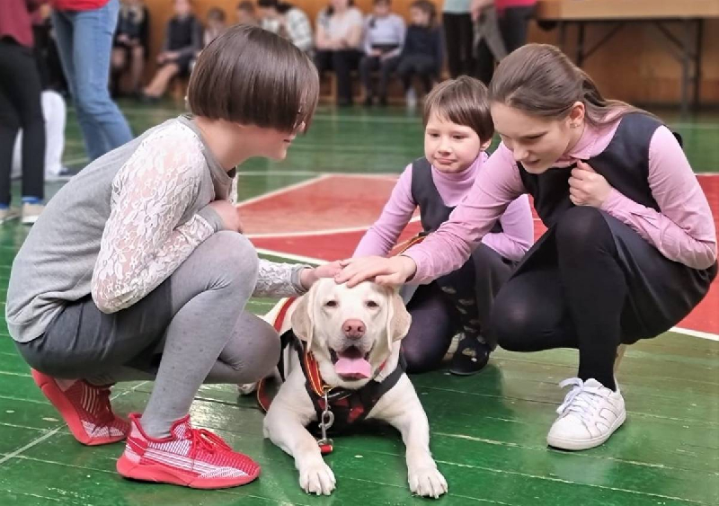 После выступления для ребят прошло занятие с элементами канистерапии (Прим.ред. - методе лечения, в котором участвуют обученные животные). Дети смогли более тесно пообщаться с собаками, погладить, сфотографироваться и даже попробовать дать команды.