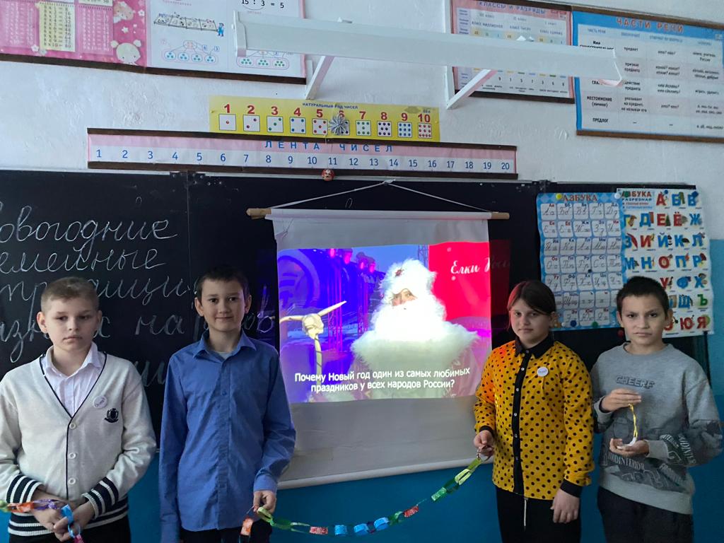 В МБОУ "Липовская основная школа" 25.12.2023 прошёл урок "Разговоры о важном" на тему: «Новогодние семейные традиции разных народов России».