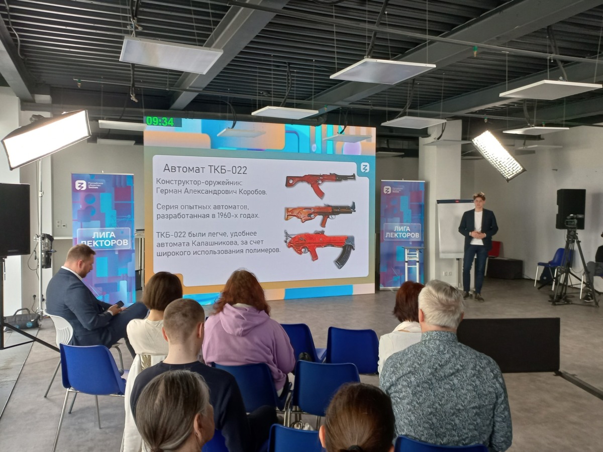 – На предыдущем этапе, в полуфинале, я рассказывал про конкурентов автомата Калашникова – других малоизвестных автоматах, которые могли принять на вооружение вместо АК , – вспоминает Денис. – Самыми сложными оказались первые минуты выступления. Не сразу получилось настроиться, задать правильный тон и скорость речи, говорить спокойно. Но справиться с волнением мне помог опыт игры в театре.