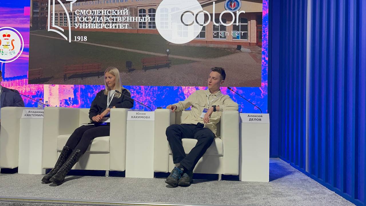 Аспирант, сотрудник Лаборатории цвета СмолГУ Алексей Делов выступил в рамках панельной сессии «Смоленск инновационный» и представил разработки, основанные на экспериментах с цветом и цветовосприятием.