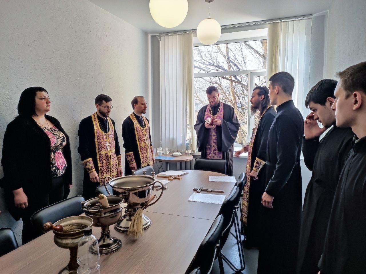 За богослужением молились директор академии Максим Вячеславович Белокопытов, начальник отдела психолого-педагогического и социального сопровождения студентов Ольга Михайловна Высоцкая, преподаватели и сотрудники академии, студенты Смоленской Православной Духовной семинарии.