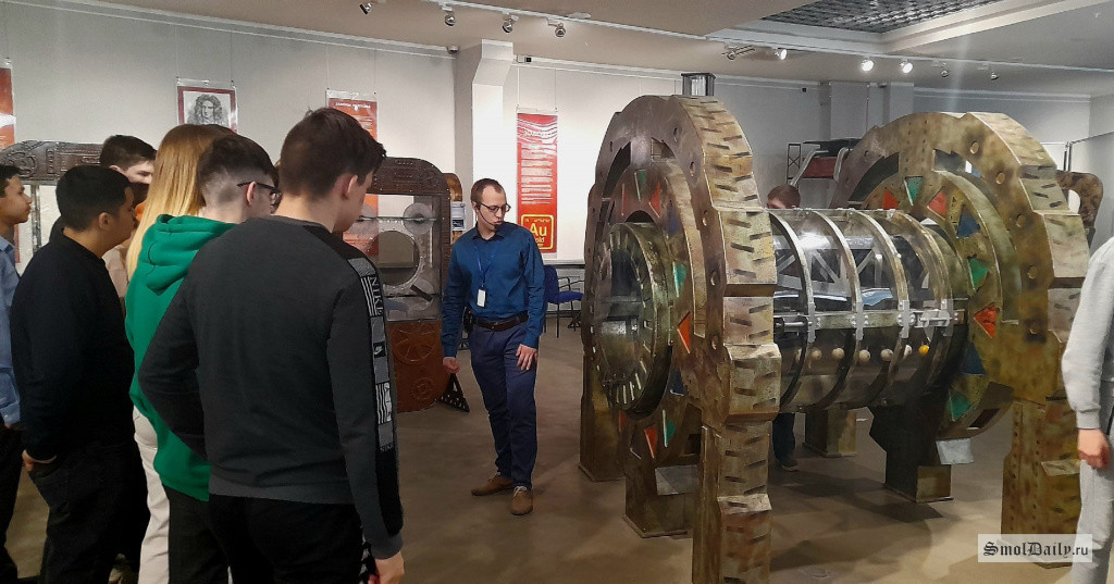 Уникальные авторские арт-объекты, представленные в экспозиции, изготовлены на основе оригинальных чертежей ученых-экспериментаторов — от Архимеда до Циолковского. На выставке ребята познакомились не только с изобретениями, но и с интересными фактами из жизни их авторов.