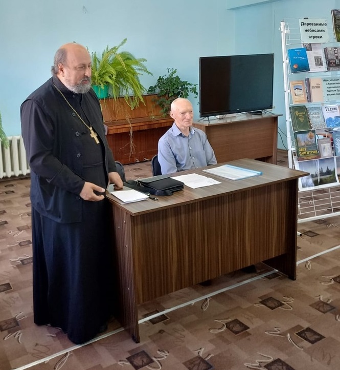 12 сентября в Центральной районной библиотеке на кафедре православной литературы, в рамках цикла бесед «Разговор со священником», прошел вечер православной поэзии «Дарованные небесами строки»,