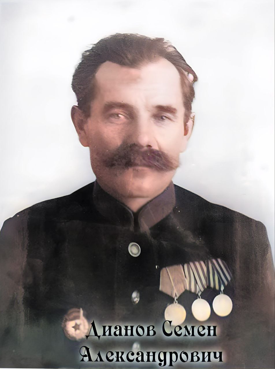 Мой дед – Дианов Семен Александрович прошёл всю войну, был призван в 1941 году и вернулся победителем в 1945 году. Был шорником, это значит, приставлен к управлению лошадью. Дело было под Великими Луками. Он в повозке управлял лошадью – вёз груз в распоряжение части. С ним был боец. Увидели, как подбитый вражеский самолет садится в поле. Не сговариваясь приняли решение взять лётчика в плен. Когда повязали фашиста, каждый вздохнул с облегчением. Солдат говорит моему деду: «Ну ты и смелый, с одним ножом пошёл на врага!» «Я смелый, потому что у тебя винтовка!» – говорит мой дед. А тот отвечает: «Винтовка есть, но в ней нет патронов, я только на тебя надеялся».