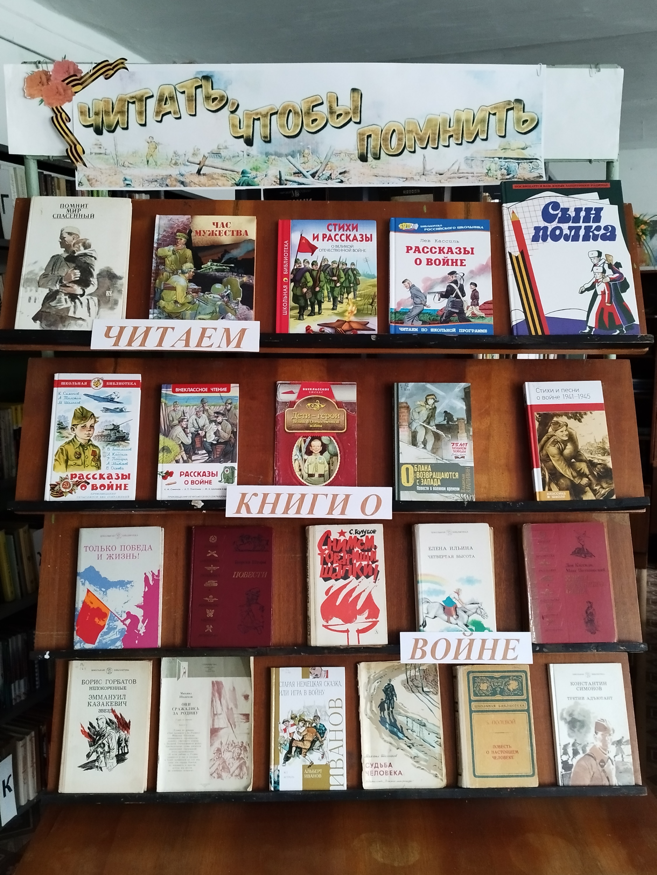 С 5 по 10 мая 2023 года в Токарёвском сельском филиале вниманию юных читателей была представлена выставка – рекомендация «Читать, чтобы помнить». На выставке представлены литературные произведения о событиях, подвигах, историях минувших дней. Художественные произведения о войне хранят мысли и чувства сражавшихся за мирную жизнь людей – взрослых и детей. Вместе с ними мы проходим трудности и лишения войны, грустим о погибших, совершаем подвиги и мечтаем о мирном времени.