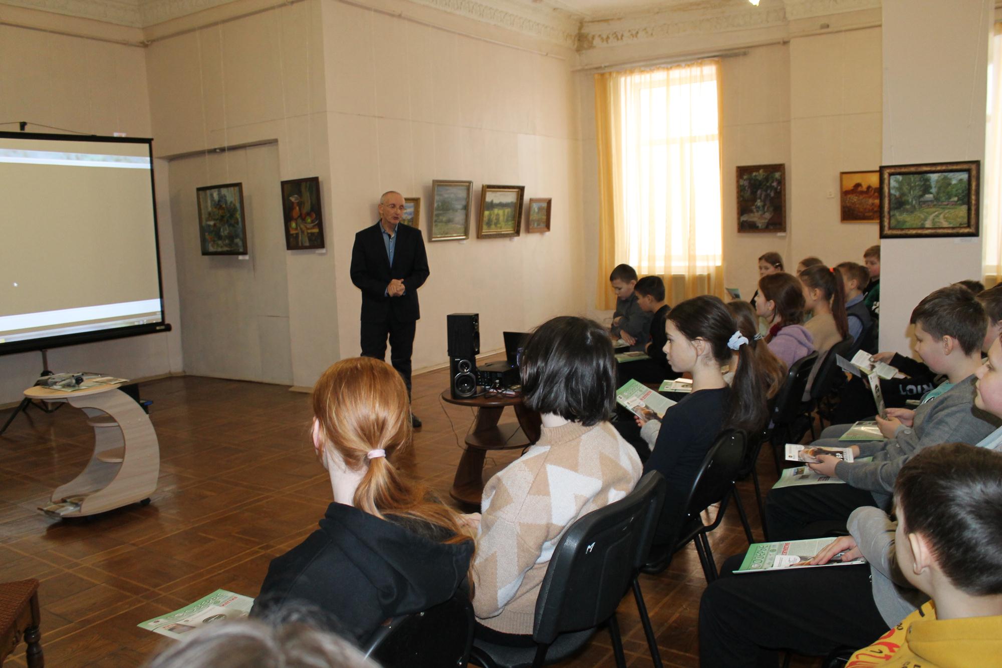 В МБУ Демидовский историко-краеведческий музей для обучающихся 5«А»,5«Б» классов МБОУ СШ №1 г.Демидов прошёл заповедный урок «В гости к зубрам». Перед ребятами выступил довольно известный человек в Смоленской области и за её пределами, специалист отдела развития туризма национального парка «Смоленское Поозерье» Геннадий Михайлович Дубино. На мероприятии были продемонстрированы фото, видео материалы о вольно живущей группировке зубров европейских. Геннадий Михайлович показал ребятам подводную камеру и квадрокоптер, с помощью которого он снимает природу на заповедной территории. Каждому обучающемуся был роздан информационный материал о природе и деятельности национального парка «Смоленское Поозерье». В завершении мероприятия дети поблагодарили Г.М. Дубино за познавательный урок и сфотографировались на память у памятника Ю.В. Никулину.