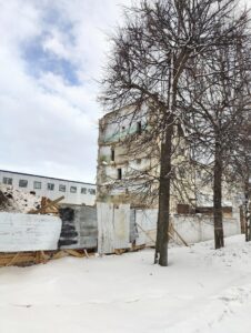 В субботу, 4 марта, на улице Ново-Московская уничтожали часть зданий от мелькомбината.