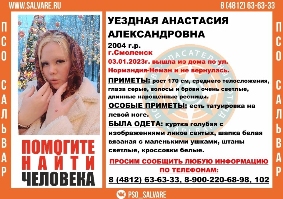 В Смоленске завершили поиски 18-летней Анастасии Уездной.
