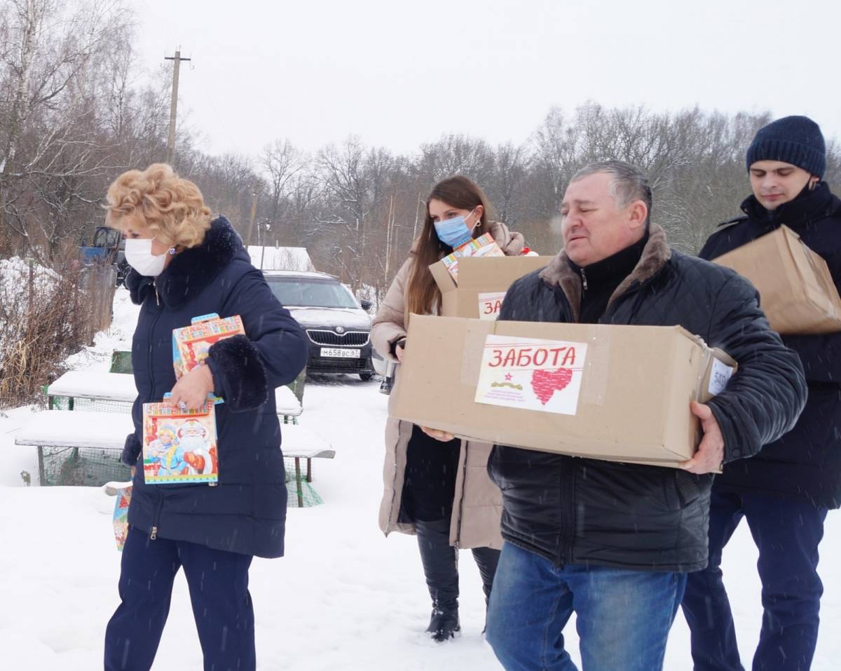 Помимо продуктов и вещей единороссы также привезли новогодние сладкие наборы детям.