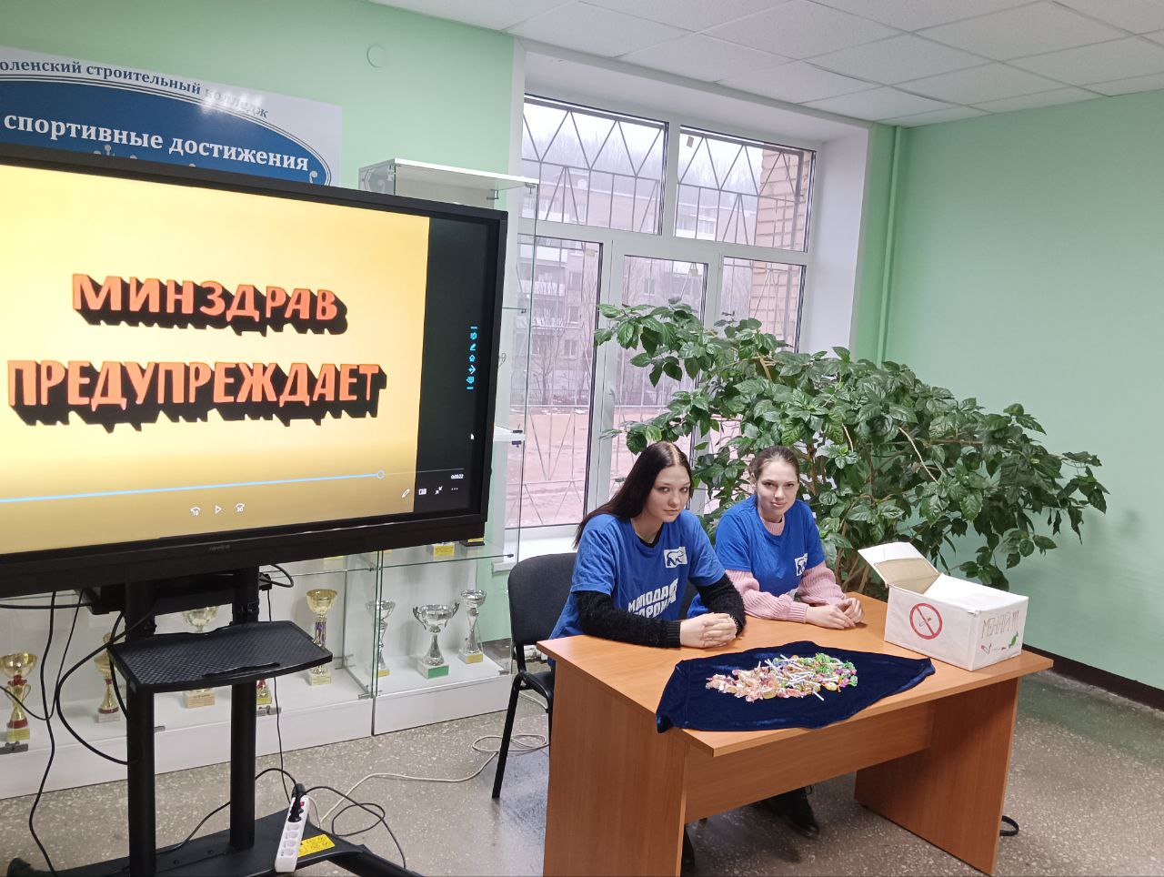 Сегодня, 20 января, активисты первичного отделения «Молодой Гвардии» Смоленского Строительного Колледжа предлагали учащимся обменять табачную продукцию на сладости.