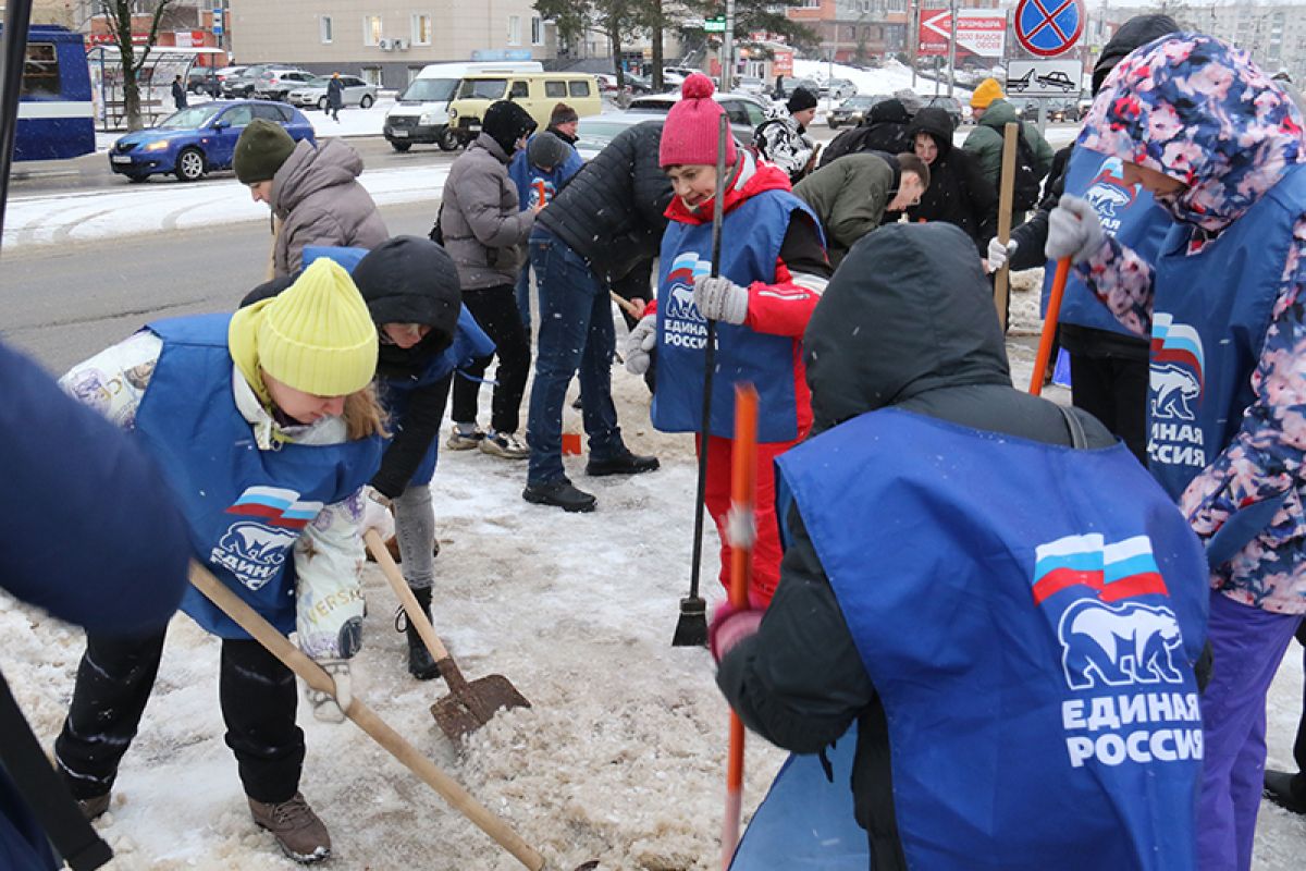 В Смоленске прошел очередной субботник в рамках проекта «Чистая страна». Активисты и волонтеры «Единой России» провели уборку от снега и наледи возле пешеходных переходов и остановок.