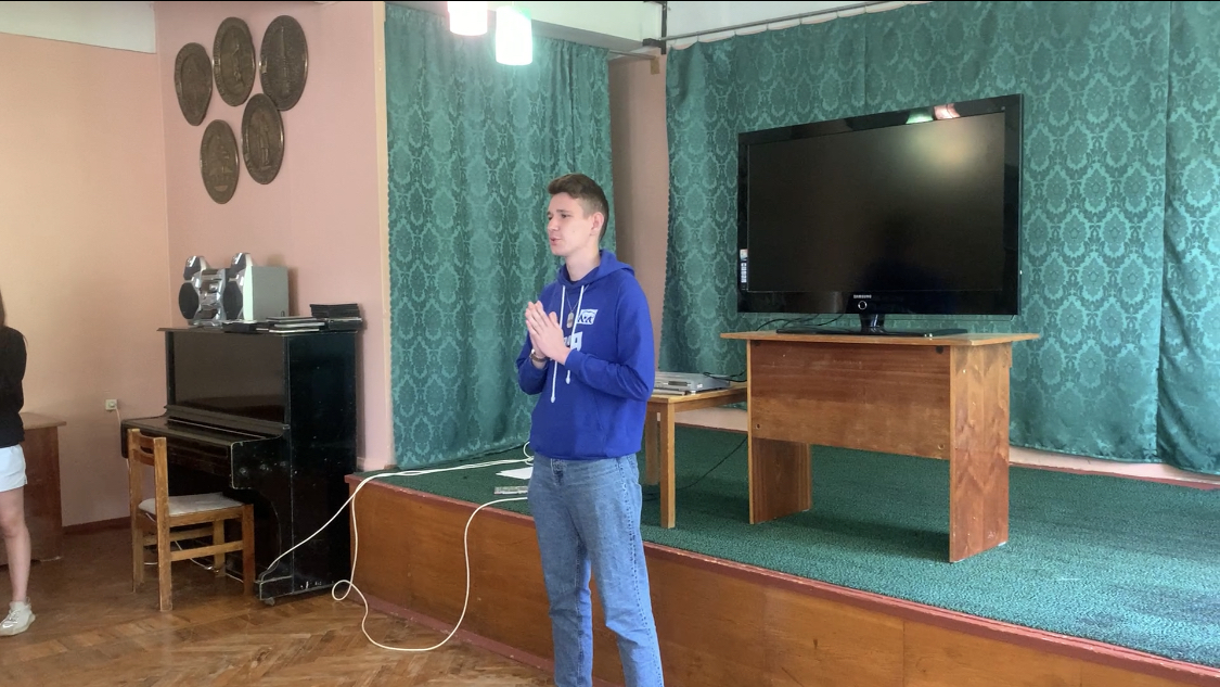 Руководитель Ярцевского районного отделения Глеб Ефременков, который закончил театральную школу, провел лекцию и практикум для детей, показав простейшие упражнения для развития речевого аппарата, постановки голоса и быстроговорения.