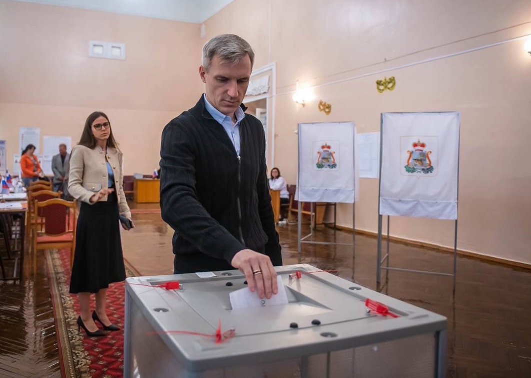 «Выполнил свой гражданский долг — проголосовал на выборах губернатора и депутатов областной думы на своем избирательном участке.