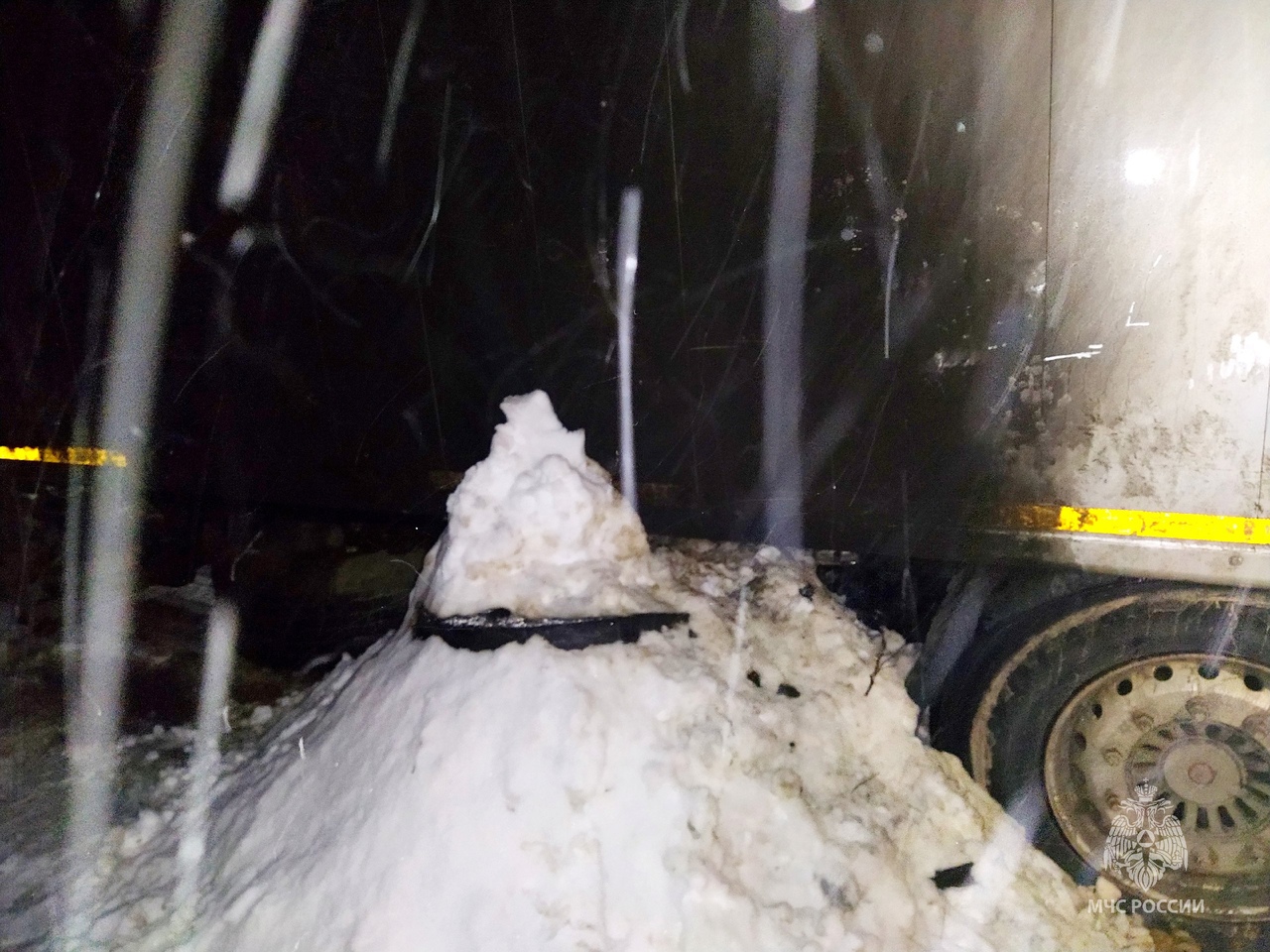 Пожар случился вечером 11 февраля в Сафоновском районе около деревни Крюково. Там во время движения фуры с полуприцепом Bodex (2018 года выпуска) загорелось колесо.