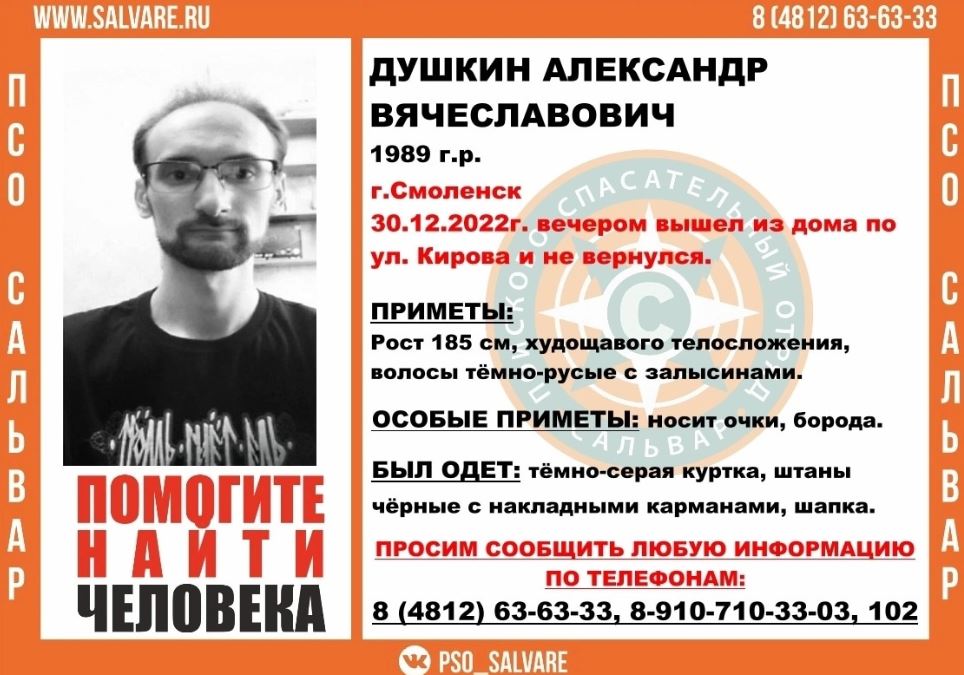 В Смоленске трагически завершились поиски 33-летнего Александра Душкина.