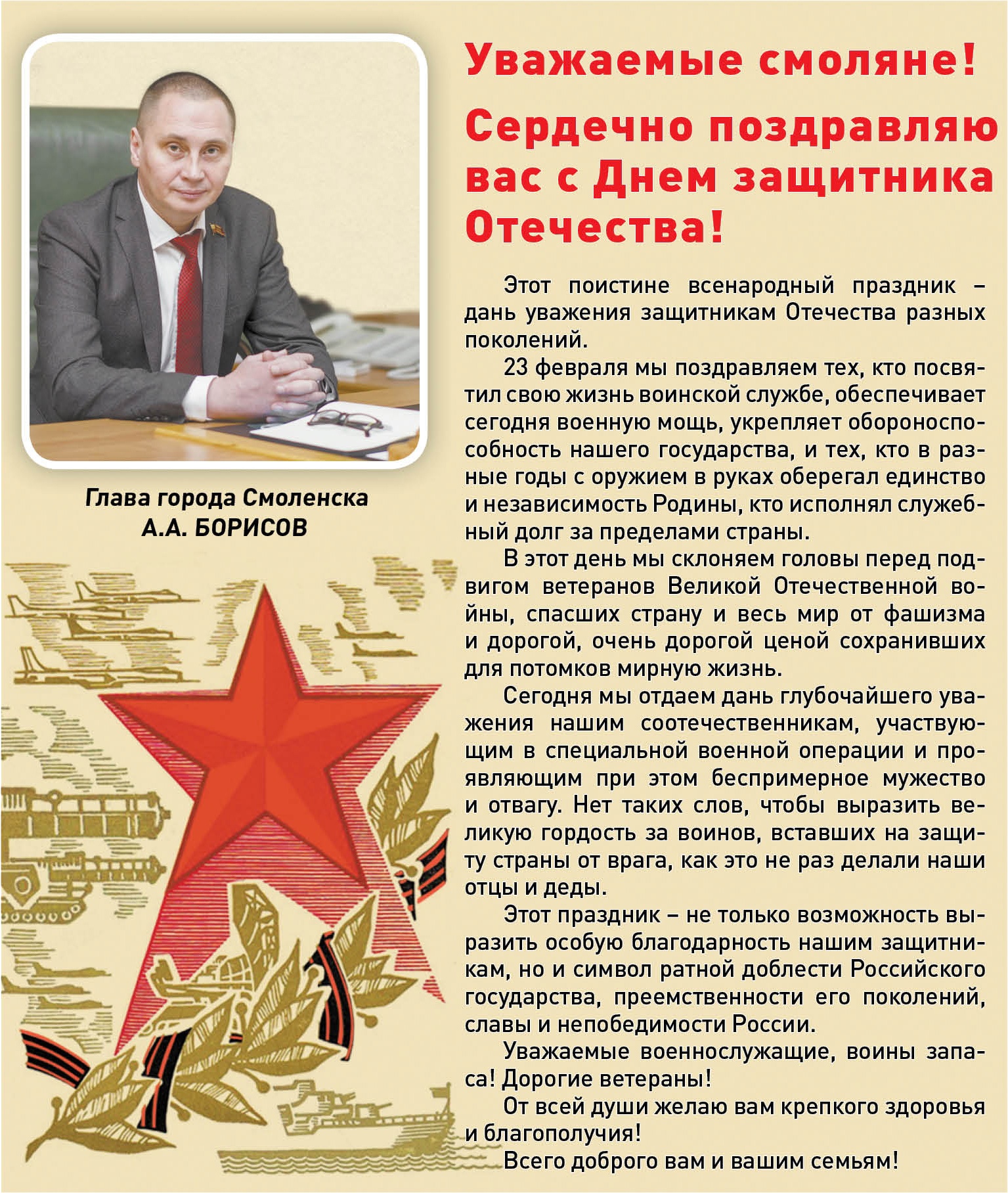 Андрей Борисов поздравляет смолян с Днем защитника Отечества