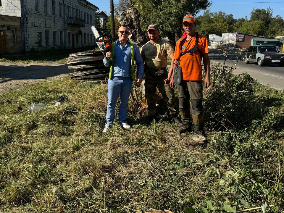 Вместе с сотрудниками компании «Чистый Город – Смоленск» депутат горсовета вышел на работу по покосу травы, спилу аварийных деревьев и порослей вблизи автобусной остановки «Пискариха».
