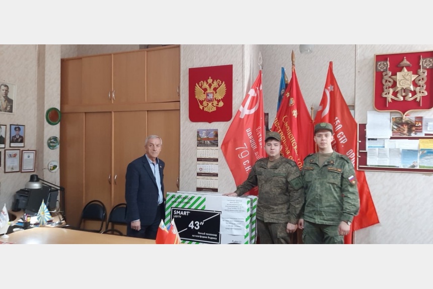 В преддверии 80-летия освобождения Смоленска от фашистских захватчиков и Дня города председатель Смоленского городского Совета ветеранов Игорь Семенченко передал представителям 144-й мотострелковой дивизии,