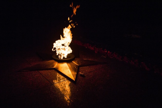 По свидетельствам очевидцев, мужчина поднял флаг под мелодию песни из фильма «Офицеры» и встал рядом с вечным огнем.