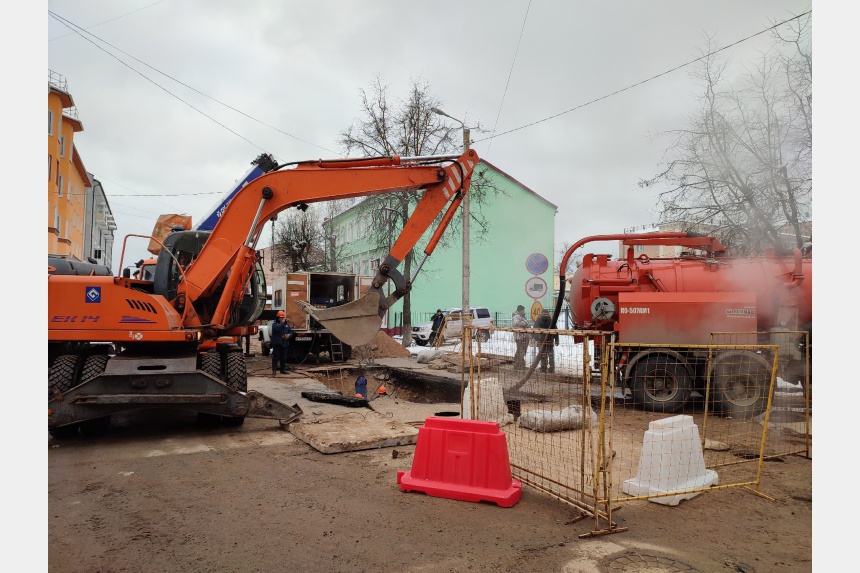 На улице Коммунистической завершаются земляные работы и готовится к демонтажу изношенный участок трубы для замены на новый. Ориентировочное время завершения этих работ - до 21 часа.