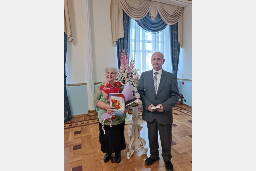 В этот особенный праздничный день, как и 50 лет назад, счастливая супружеская пара принимала искренние поздравления с важным событием в жизни. Юбилярам был вручен поздравительный адрес с пожеланиями взаимной любви и уважения, понимания и заботы друг о друге.