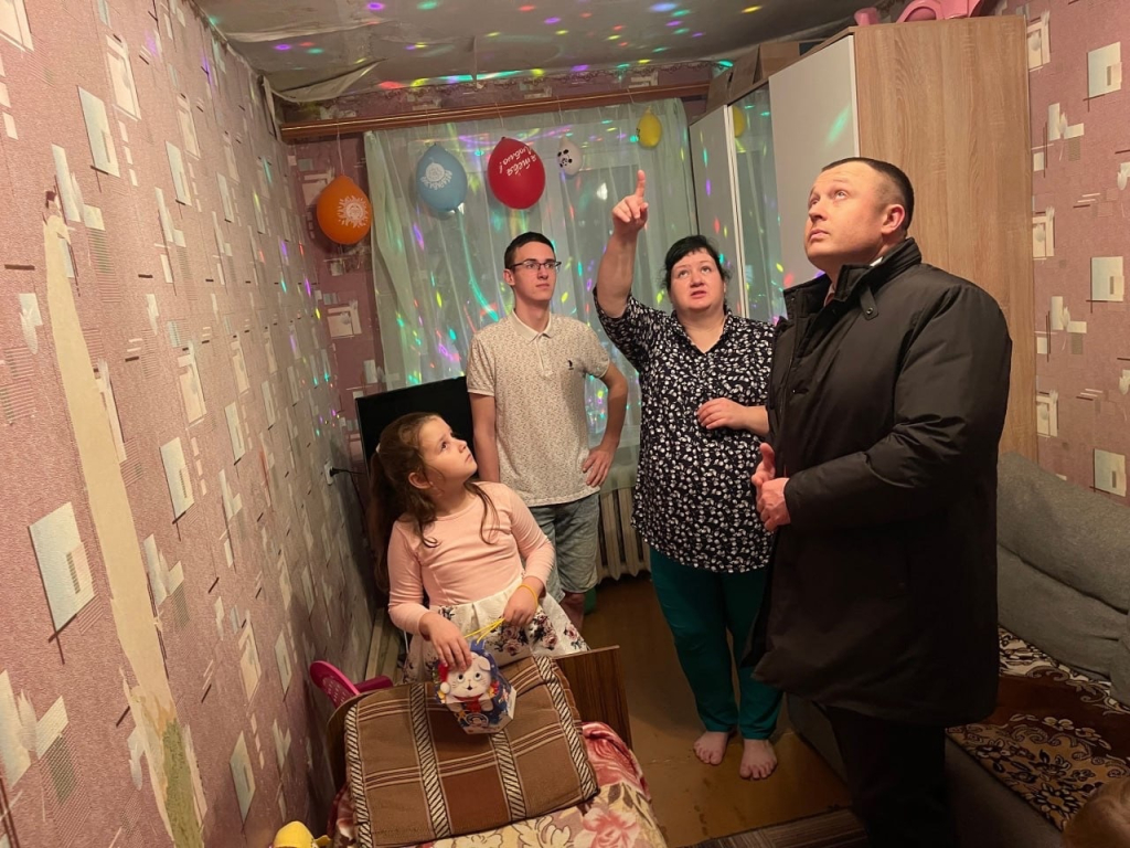 Когда перед Новым годом Владимир Емзариевич заехал поздравить многодетную семью Новиковых, проживающую на улице Кловской в доме 52, то ему показали последствия регулярных заливов на потолке и стенах в одной из комнат.