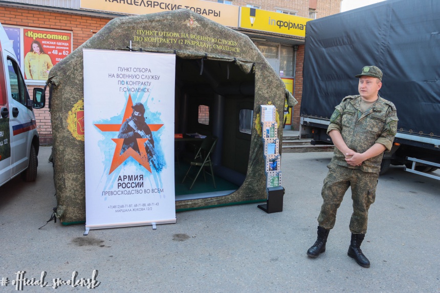 Для удобства подачи документов в каждом районе Смоленска работают мобильные пункты. Один из них посетил временно исполняющий полномочия Главы Смоленска Александр Новиков, пообщавшись с добровольцами и инструкторами пункта, которые готовы дать подробную информацию о порядке, условиях и гарантиях прохождения контрактной службы.