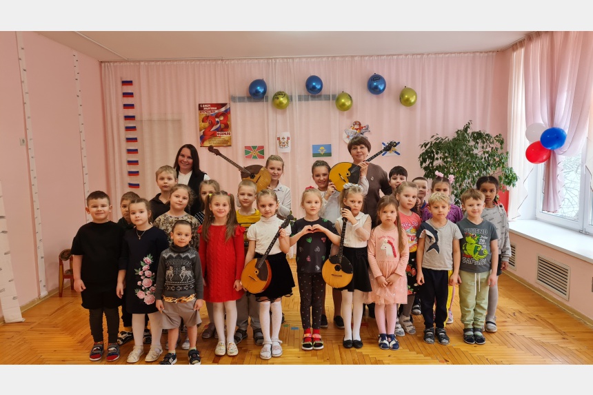 Учащиеся Детской музыкальной школы № 5 им. В.П. Дубровского города Смоленска преподавателя Марины Романовой при участии концертмейстера Елены Повышевой сделали подарок воспитанникам детского сада «Колокольчик» – концерт «С чего начинается Родина», посвященный Дню защитника Отечества.